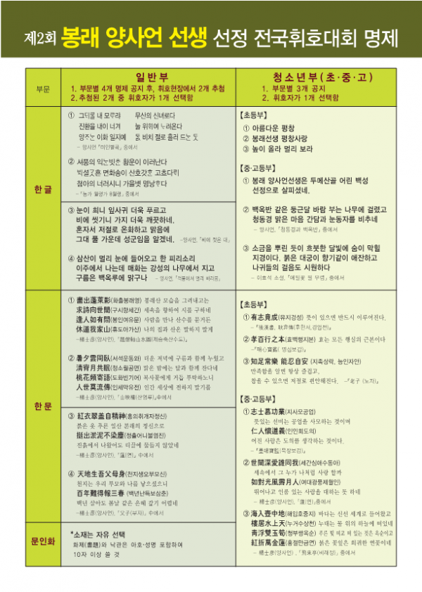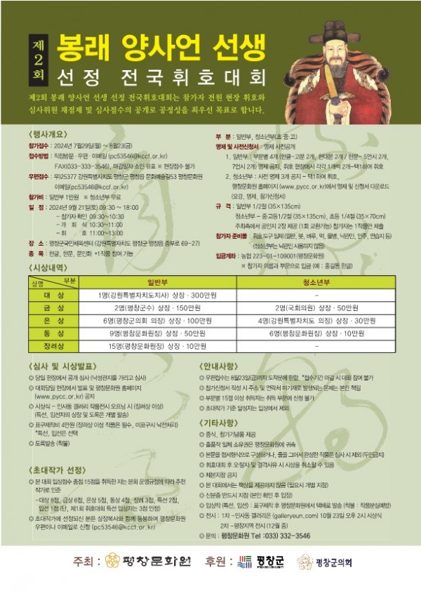 제2회 봉래양사언 선생 선정 전국휘호대회 개최 안내
