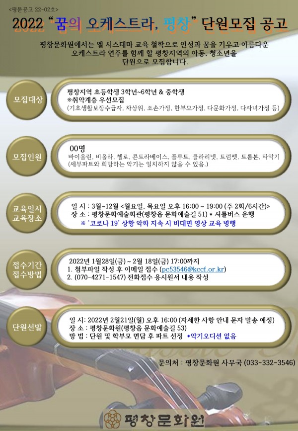 <2022년도 꿈의 오케스트라, 평창 신입단원 모집-마감>