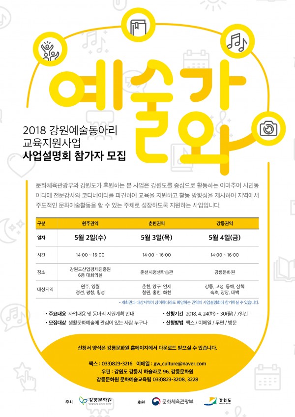 강릉문화원 주최로 실시하는 2018강원예술동아리 교육지원사업에