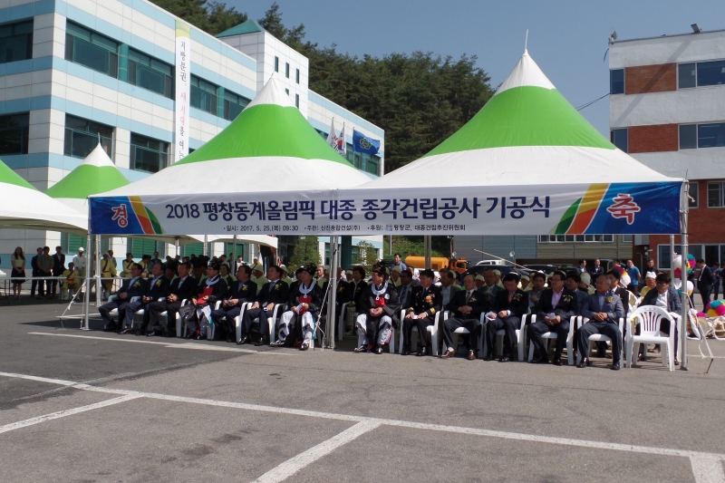 지난 5월 25일(목) 09:00 평창군청 앞 2018평창올림픽 대종 종각건립 기공식이 평창군청과 대종건립 추진위원회 공동주관으로 기관단체장 및 대종건립추진위원회(위원장 이욱환), 평창향교, 평창읍 민속보존회(회장 김남혁) 둔전평농악 단 등 100여 명이 참석한 가운데 개최하였다.