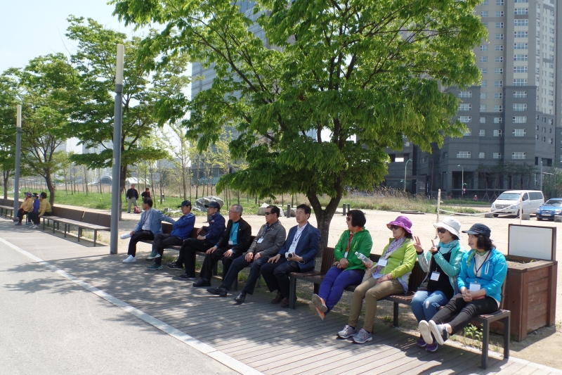 먼저 수상택시에 오르신 분들과 돌아오기를 기다리며 나란히 풍경을 관람하시는 회원들의