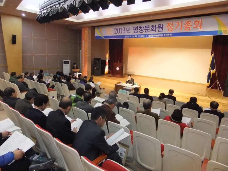 2013. 2. 28. 목요일 11시 문화예술회관 소공연장에서 2013평창문화원 정기총회가 열렸습니다.