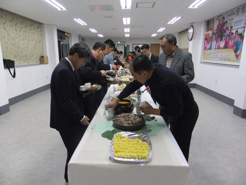 2012. 9. 20. 목요일 저녁6시 평창회 회원분들과 문광부 사무관님, 연합회장님, 군청 관계자분들께서 참석해 도사리 산촌체험관에서 그동안 어르신들이 재현해 온 음식으로 품평회를 열었습니다.