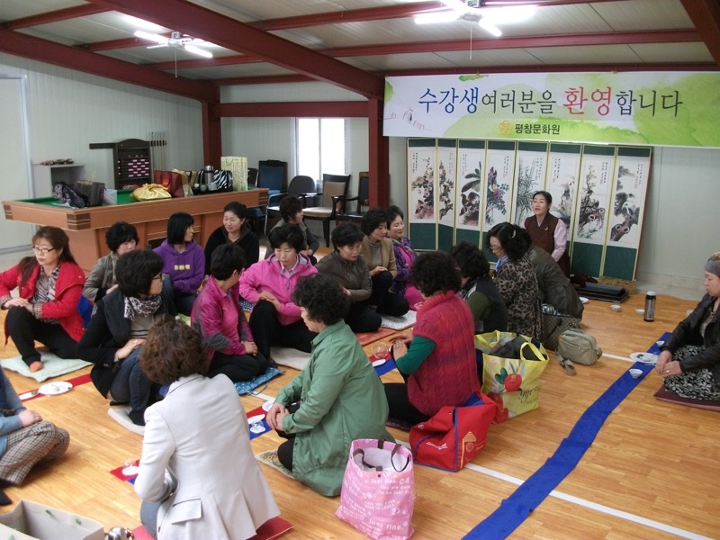 2012.4.10. 문화학교 진부다례반이 개강을 하였습니다. 올해 진부에서는 처음으로 다례반을 개설하여 진부면민들이 많이 참여를 하셨습니다.