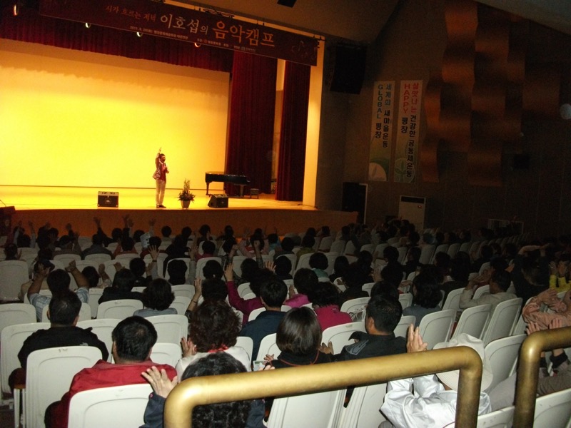 2011. 9. 20. 화. 저녁 7시 문화예술회관 대공연장에서 시가흐르는 저녁 이호섭의 음악캠프를 열었습니다. 방송인 및 작곡가인 이호섭의 진행으로 열린 음악캠프에는 안다미, 손동호, 유심초가 함께하여 평창군민 모두가 즐거운 시간을 보내고 가셨습니다.