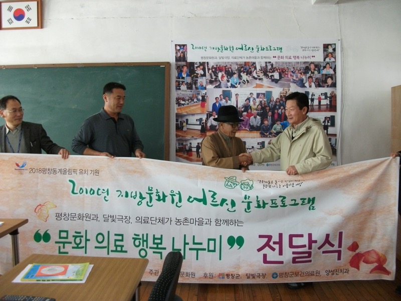 2010.11.22.월요일 2010 어르신문화프로그램 기획학교 "평창문화원과 달빛극장이 함께 찾아가는 문화의료행복나누미" 각 마을별로 공연했던 사진자료들을 현수막으로 만들어 각 마을에 게첨해 주었습니다.