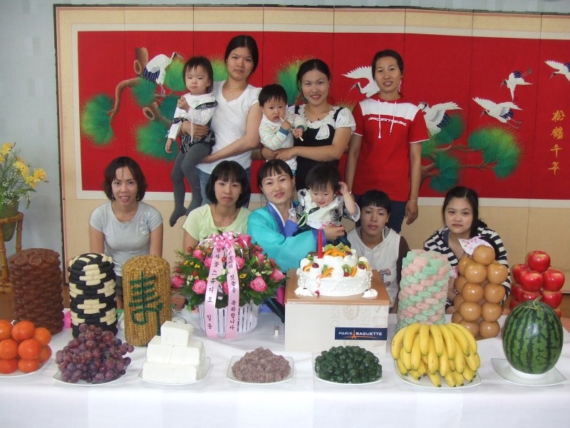 09.6.14.일요일 오후4시에 다문화 이주여성 아이의 돌잔치가 있었습니다. 항상 문화원 교육에 열심히 나오시는 베트남 후인바오수엔씨네 가족과 예슬이의 돌을 축하하러 온 베트남 이주여성분들 입니다.