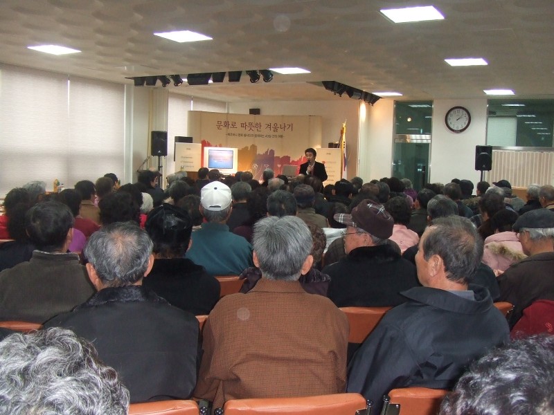 건강을 지키기 위한 스트레칭법과 웃음치료법, 신명나는 우리 장구가락도 듣고, 흥에겨운 노래도 배우고 즐기는 흥미롭고 알찬 시간이었습니다.