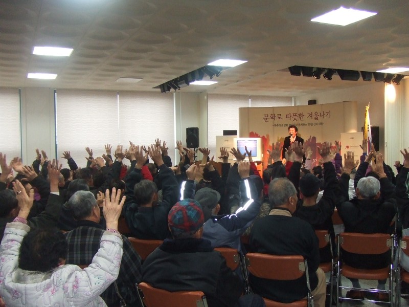 건강을 지키기 위한 스트레칭법과 웃음치료법, 신명나는 우리 장구가락도 듣고, 흥에겨운 노래도 배우고 즐기는 흥미롭고 알찬 시간이었습니다.