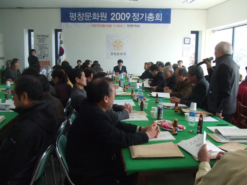2009. 2. 26. 목요일 11시에 평창문화원 문화학교에서 임원님들과 회원님들이 참석한 가운데 정기총회가 열렸습니다.