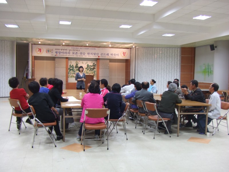 2008.6.4.수 미탄면 복지회관에서 땡땡땡 실버문화학교 개강식 및 오리엔테이션을 하였습니다. 앞으로 실버문화학교가 발전할 수 있도록 사업방향을 잡는 알찬시간이 되었습니다.