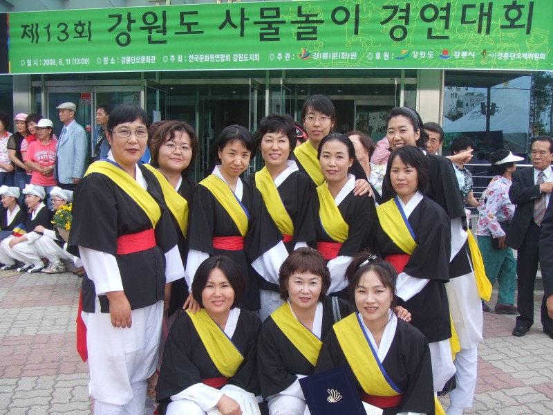 2008.6.11.수요일 강릉에서 제13회 강원도 사물놀이 경연대회가 있었습니다. 우리 평창문화원 사물놀이팀 "운우풍뢰"팀이 동상을 수상하였습니다. 그동안의 연습이 헛되지 않고, 이렇게 수상을 하게 되어 너무나 기쁩니다. 모두들 수고하셨구요, 진심으로 축하드립니다. 평창의 사물놀이가 더욱더 발전하길 기대해 봅니다.