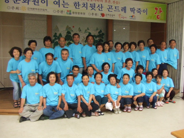 문화원 | 평창아라리강습-5 페이지 정보 작성자 평창문화원 작성일07-07-06 00:00 조회2,414회 댓글0건 이전글 다음글 목록 본문 2007.7.5. 평창아라리 5번째 강습이 열렸습니다. 통일감을 주기위해 단체티를 맞춰 나눠드렸습니다. 매주 단체티를 입고나오셔서 좋은 아라리 보여주시고 어르신들 힘내세요~ 댓글목록 등록된 댓글이 없습니다. 이전글 다음글 목록