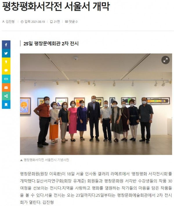언론보도 스크랩 | 평창평화서각전 서울서 개막 페이지 정보 작성자 평창문화원 작성일21-11-05 14:44 조회3,297회 댓글0건 이전글 다음글 목록 본문 . 댓글목록 등록된 댓글이 없습니다. 이전글 다음글 목록