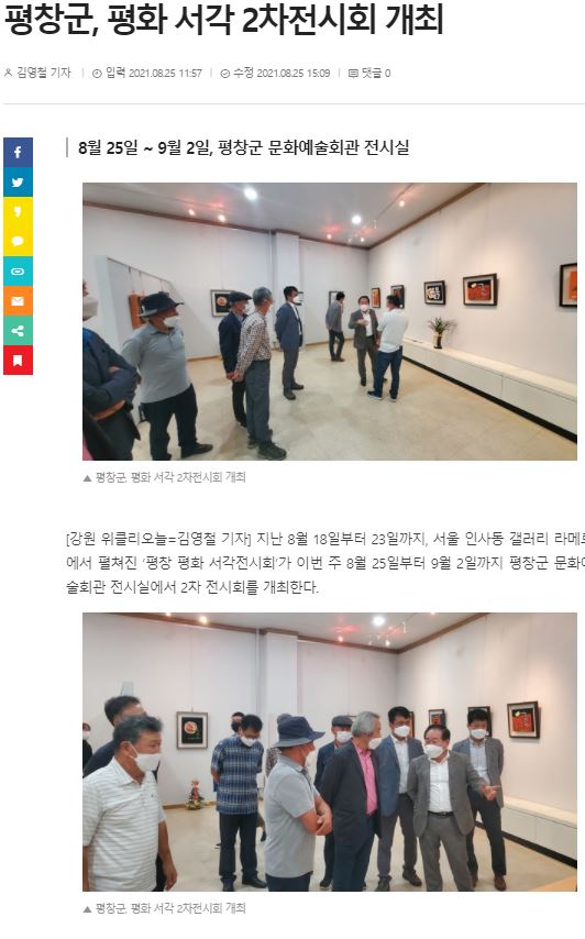 언론보도 스크랩 | 평창군, 평화 서각 2차 전시회 개최 페이지 정보 작성자 평창문화원 작성일21-11-05 14:49 조회3,020회 댓글0건 이전글 다음글 목록 본문 . 댓글목록 등록된 댓글이 없습니다. 이전글 다음글 목록