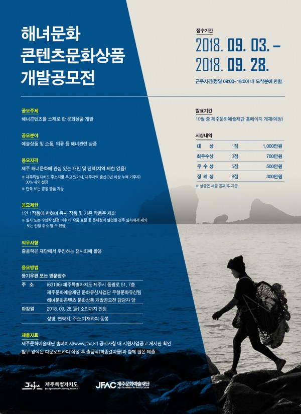 '해녀문화콘텐츠 문화상품(예술상품, 소품, 의류 등) 개발공모전'을 진행하고 있습니다.
